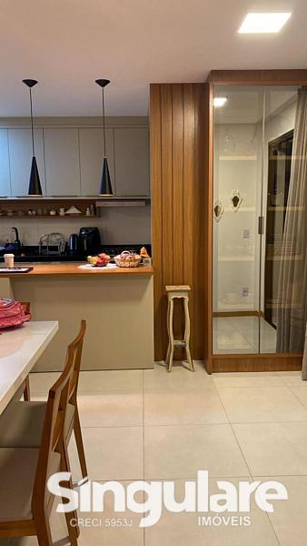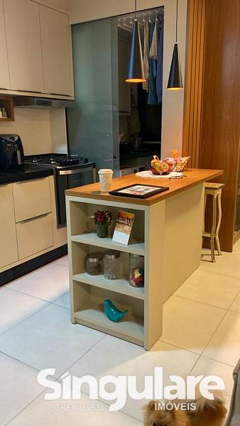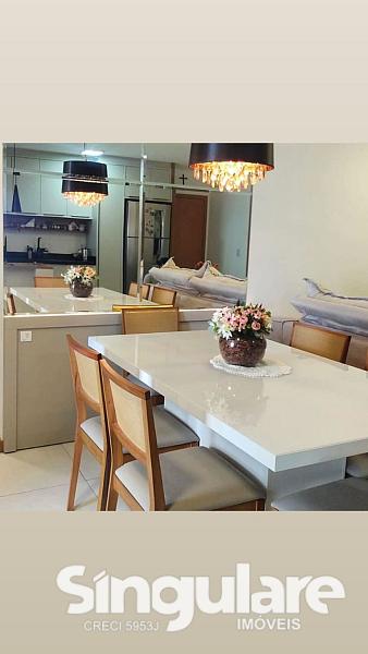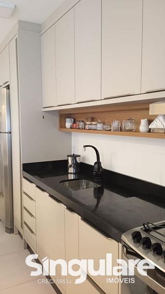 Com 95 m², o imóvel é bem distribuído e conta com 3 quartos, sendo 1 suíte com ar-condicionado, banheiro social, sala e cozinha integradas, sacada com churrasqueira e área de serviço. A mobília sob medida permanece no apartamento, agregando praticidade e valorização.