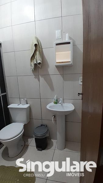 Semi-mobiliada com: 3 camas de casal, 1 cama de solteiro, 3 ar condicionados um sofá retratil c/2 lugares, 1 mes c/2 bancos, armario da cozinha c/3 gavetas e 7 portas, armário embutido c/5 portas, 1 armário no canto c/2 portas. fogão com 4 bocas, 1 botijão, 1 tanquinho, 1 geladeira, 1 mesa na garagem e 2 banheiros completos.
